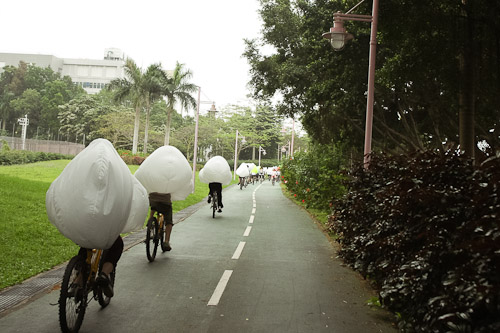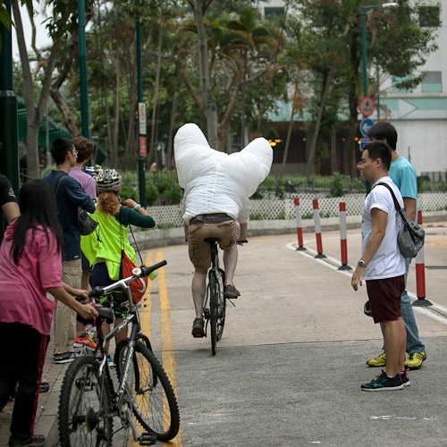 I guess one name for riding doubles is "dinking" in the US - I wonder what its called in Hong Kong? 自行车三明治
