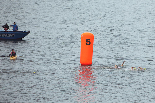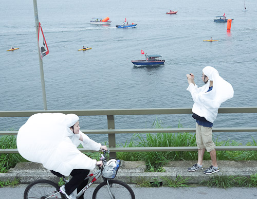 Folks were swimming in the bay under the watchful eye of the goddess of the sea.