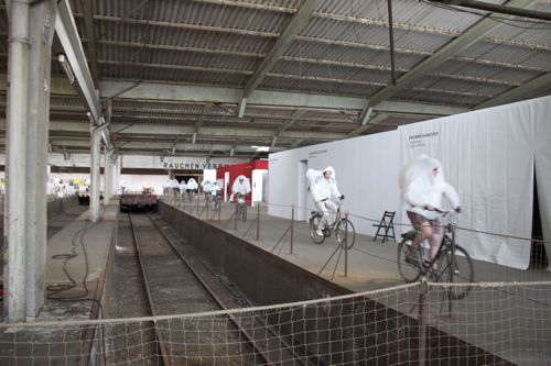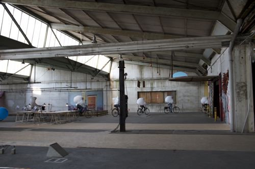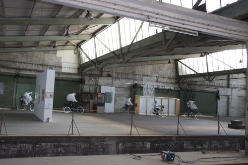 The ride started at the gallery space which was this giant old cargo train station called the Guterbahnhof. We got to ride inside the gallery and its funny because it was the first time in 16 rides that the Aeolian Ride has been in a gallery space live..