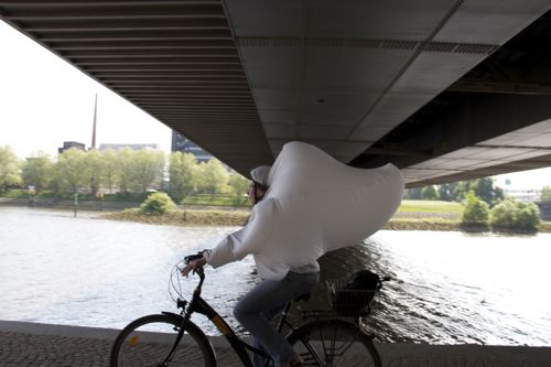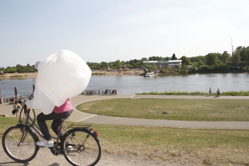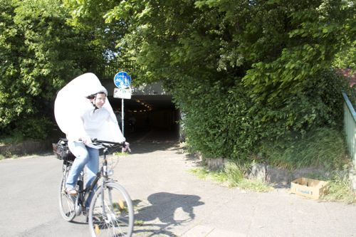 THERE ARE OTHERS Claudia Medeiros Cardoso, artist and freind holds one of her signs for an art project about inhabiting foriegn spaces. I met her seven years ago in Cuba when I was inflating Front with Margot & Ralph. Many thanks to her for thinking of bringing the ride to to Bremen and introducing me to her friends.