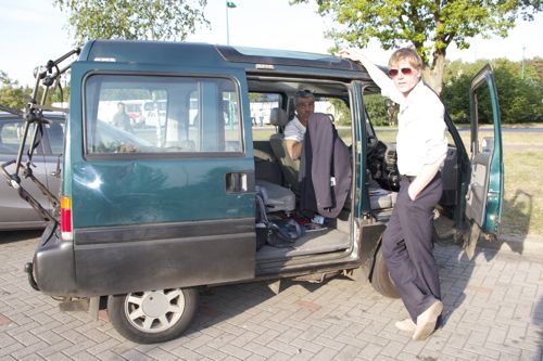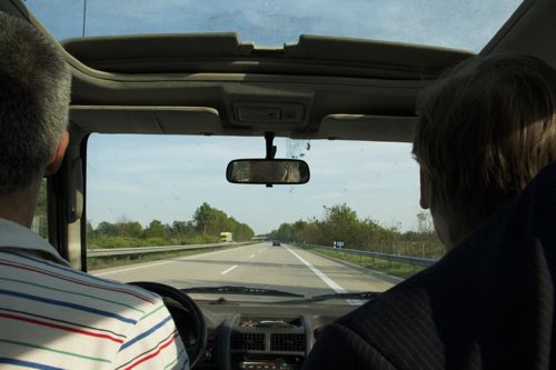 Tinyride with tall guys. Andrea is currently buidling a portable sauna that is to be pulled by a tractor. He told me of his project that he made a interactive sculpture of a giant rotatable stone that you shoot at with a a machine gun like device to chip away bits of stone. Andrea is a great tour guide and artist as well.