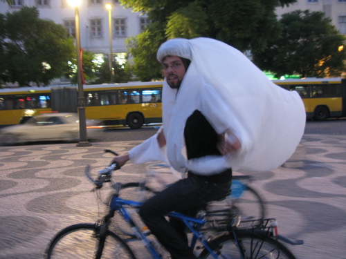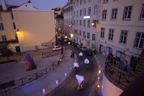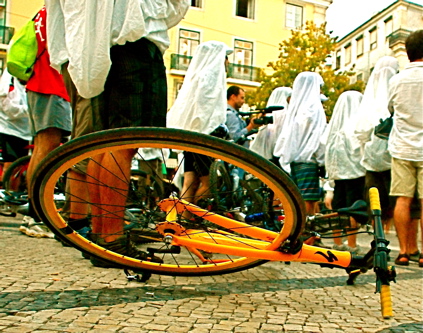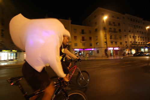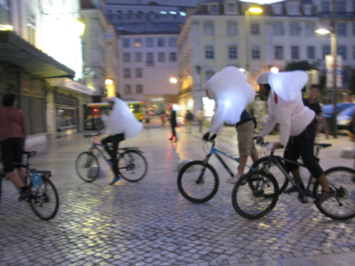 One of the riders is an Acrobat, Tina Clay. She was so excited that the bike festival was here in Lisbon because she misses bike culture. I told her to start a midnight ridazz in Portugal to make the biking event into a social one that will entice people to come out and play and that I would support her by sending the message to all the riders on my mailing list. She immediately contacted Ricardo and I think they may do it!