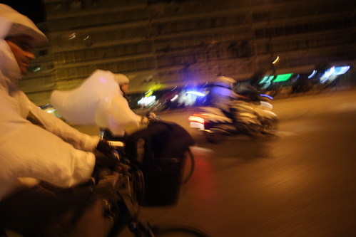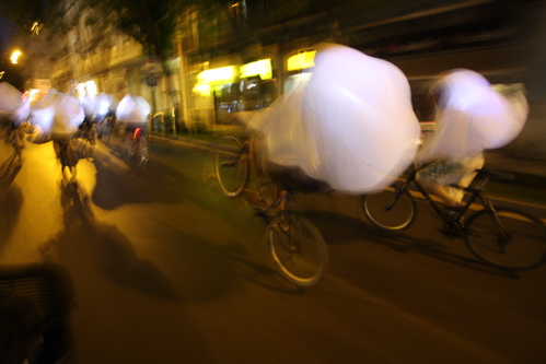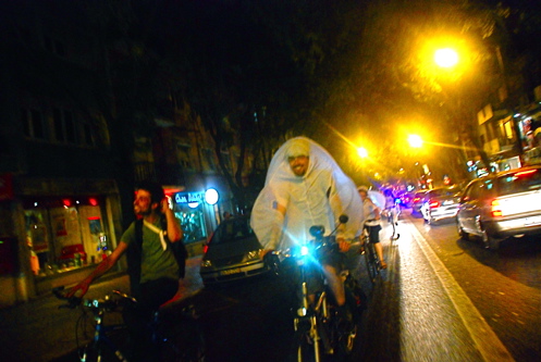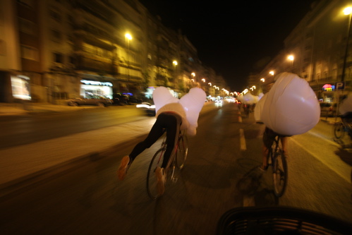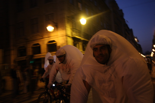 This ride and the Bicycle Film Festival are like a baby shower for the bikes in Lisbon. Its exciting - there is a great amount of momentum in a small number of people. So when the police moved or stopped a car for the cyclists here they felt the pleasure of recognition and importance.