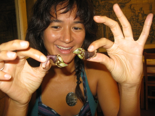 I wanted to make jewelry out of the tops. You pull off the part that looks like jade embedded into rubies and you are left with a little tube that looks and feels like a tiny elephant trunk, from which you pull the meat that tastes like the sea.