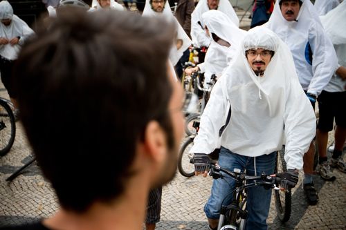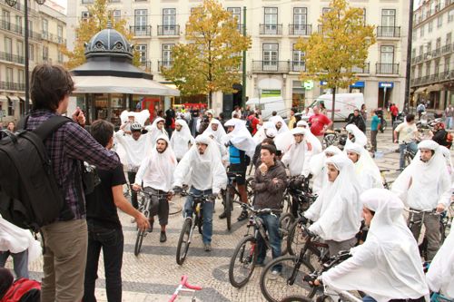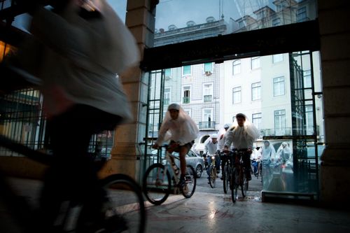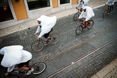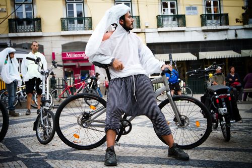 10.07.10 BICYCLE FILM FESTIVAL BROUGHT THE AEOLIAN RIDE TO THE LISBON FOR OUR SECOND RIDE IN PORTUGAL. OUR RIDERS OPENED UP FASHION WEEK RIDING THROUGH THE FASHION MARKET RUNWAY THIS YEAR. THIS YEARS LOOK: INFLATABLE COSTUMES AND A SWEET RIDE. VIDEOIS COMING!